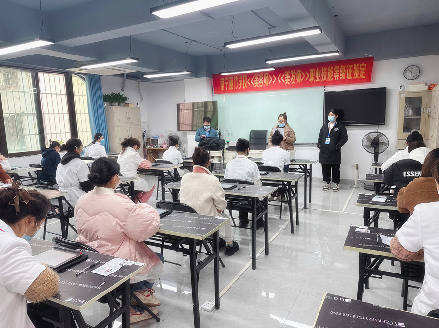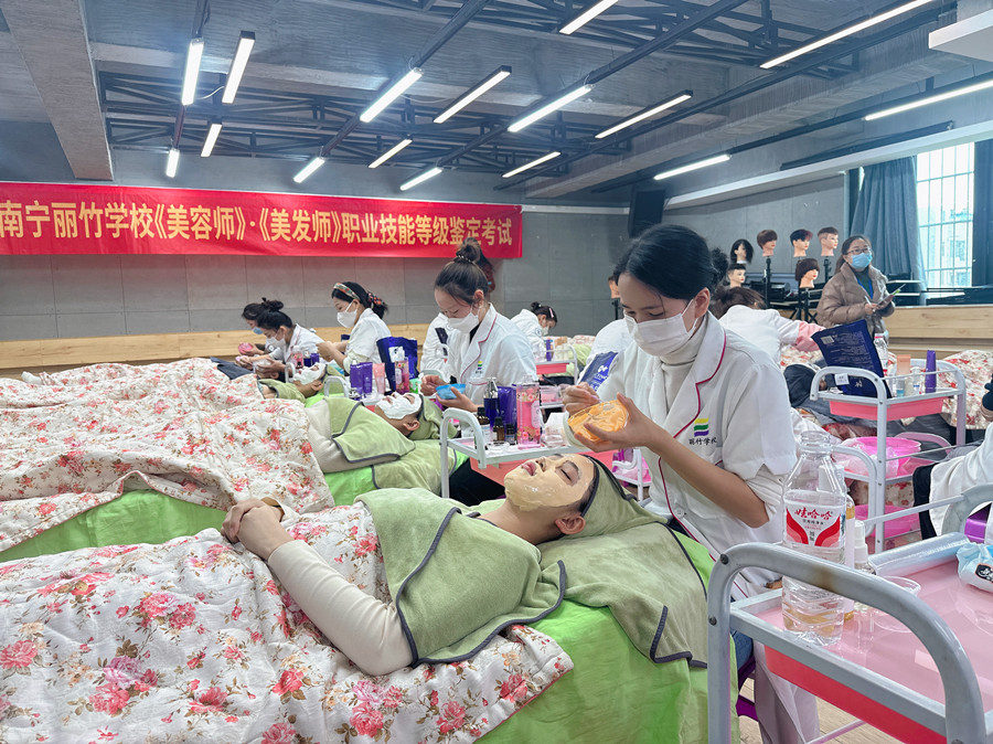 麗竹學(xué)校進(jìn)行廣西美容師考證鑒定考核